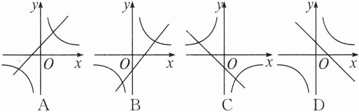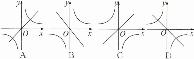 【例 1】在同一坐标系中,反比例函数 $ y = \frac{k}{x} $($ k \neq 0 $)和一次函数 $ y = kx + 3 $($ k \neq 0 $)的图象大致是( )
