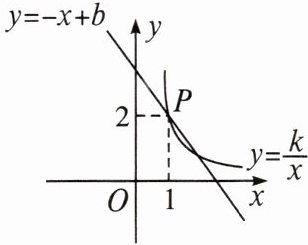 6. 如图,已知一次函数 $ y = -x + b $ 与反比例函数 $ y = \frac{k}{x} $($ k \neq 0 $)的图象相交于点 $ P $,则关于 $ x $ 的方程 $ -x + b = \frac{k}{x} $ 的解是______.