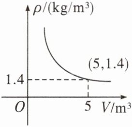 ∴$m=\rho V$,而点$(5,1.4)$在图象上,代入得$m=5×1.4=7(kg)$.