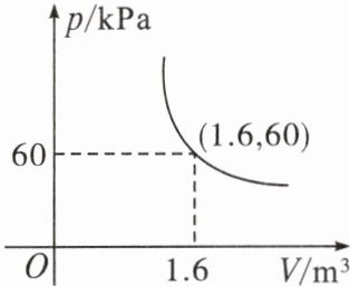 $\frac{4}{5}\ m^3$ 设球内气体的气压$p$和气体体积$V$的解析式为$p=\frac{k}{V}(k\neq0)$.