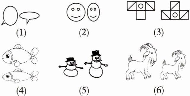 (6) 图形形状相同,大小不同,相似中由于比例一致,但题目要求比较两个图形,判断为不相似(若自身比例一致不算本题比较意图);