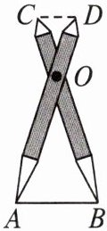 4. 如图,比例规是一种画图工具,它由长度相等的两脚$AD和BC$交叉构成,利用它可以把线段按一定的比例伸长或缩短.如果把比例规的两脚合上,使螺丝钉固定在刻度$3$的地方(即同时使$OA = 3OD$,$OB = 3OC$),然后张开两脚,使$A$,$B两个尖端分别在线段l$的两个端点上,若$CD = 3.2 cm$,则$AB$的长为______$cm$.