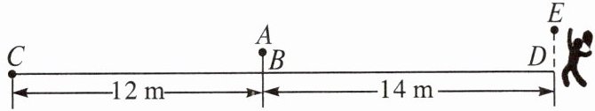 ∴$\frac{CB}{CD}=\frac{AB}{ED}$,即$\frac{12}{12 + 14}=\frac{0.9}{ED}$,解得ED=1.95(m).