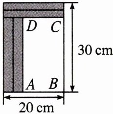 (2)为了更好地寻找题目中的等量关系,将横、竖彩条分别集中,原问题转化为如图所示的情况,得到矩形ABCD,再用含x的代数式表示:AB=(20-6x)cm,AD=(30-4x)cm,矩形ABCD的面积为(20-6x)(30-4x)$cm^2$.