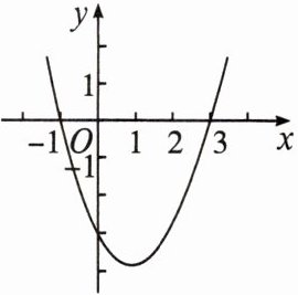 1. 已知二次函数 $ y = x^{2} - 2x - 3 $ 的图象如图所示。当 $ y < 0 $ 时,自变量 $ x $ 的取值范围是( )