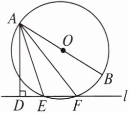 【例2】已知直线$l与\odot O相交于点E$,$F$,$AB是\odot O$的直径,$AD \perp l$,垂足为$D$。若$\angle DAE = 18^{\circ}$,求$\angle BAF$的大小。