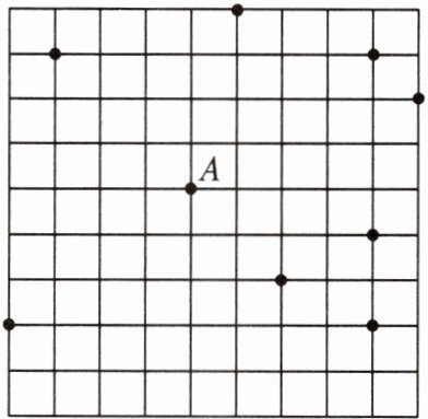7. 如图,在网格(每个小正方形的边长均为1)中选取9个格点(格线的交点称为格点),若以A为圆心,r为半径画圆,选取的格点中除点A外恰好有3个在圆内,则r的取值范围为______。