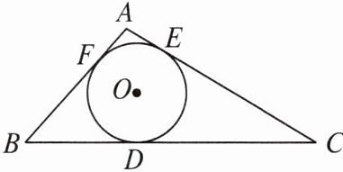 7. 如图,⊙O是△ABC的内切圆,分别切BC,AC,AB于点D,E,F,△ABC的周长为24 cm,BC= 10 cm,则AE= ______cm。