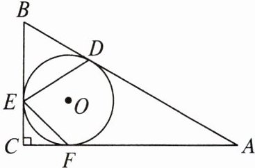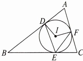 4. 如图,在Rt△ABC中,∠C= 90°,∠B= 60°,AB,BC,CA分别与内切圆⊙O相切于点D,E,F,则∠DEF的度数为______。