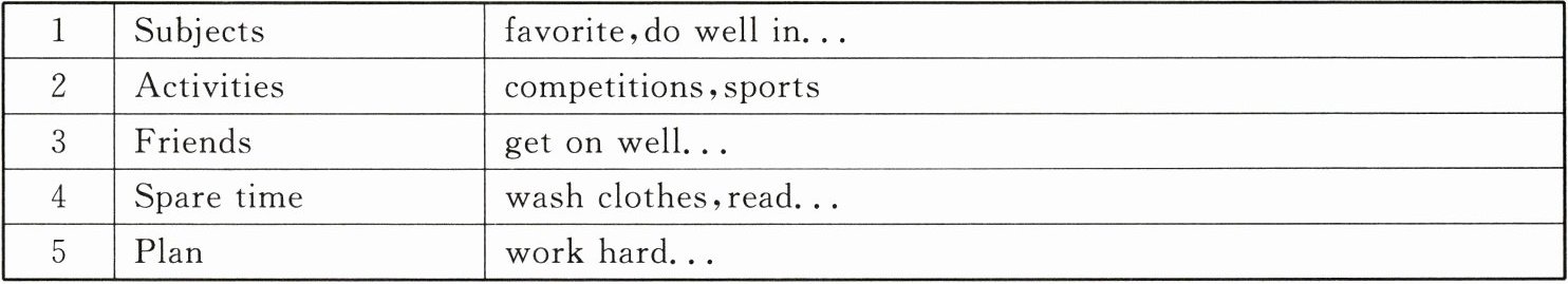 莹莹的父母外出打工,把她送到寄宿学校学习。开始她感到不习惯,但在老师和朋友的帮助下,现在学习、生活非常好。假设你是莹莹,请根据下表提示给父母写一封信,介绍你的在校情况和今后的打算。