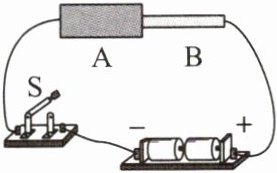如图所示,导体A、B是由同种材料做成的,A和B等长,但A比B的横截面积大,当开关S闭合后,在相同时间内,下列叙述正确的是( )