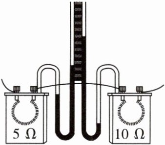 (1) 如图所示,两个容器中的电阻丝____起来接到电源两端,通过两段电阻丝的____相同。通电一段时间后,比较两个U形管中____的变化。
