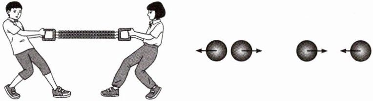 2. 如图所示,弹簧形变时具有____;互相排斥和吸引的分子具有____。