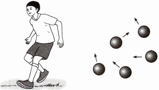1. 如图所示,运动的足球具有____;运动的分子具有____。