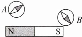 (3) 两个磁极:悬吊着的磁针,静止时指南的那个磁极叫作______或______,指北的那个磁极叫作______或______。