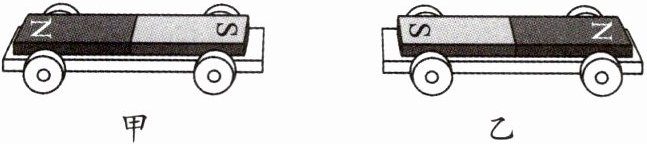 1. 如图所示,在两个靠得较近的小车上分别放一块磁体,同时松手后观察到的现象是( )