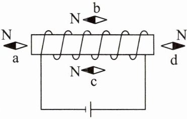 6. 如图所示电路中,导线通电之后,小磁针静止时______极所指的方向为该点磁场的方向,若想改变此处的磁场方向,接下来的操作是______。