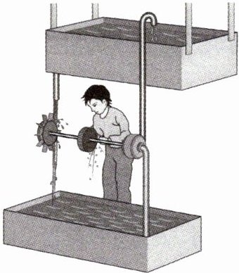 2. 一种人们设想中的永动机如图所示,它通过高处的水流冲击叶片,叶片的转动带动砂轮转动打磨工件,同时带动抽水机将水从低处抽到高处,从而循环工作,这种永动机______(选填“能”或“不能”)永远工作下去。