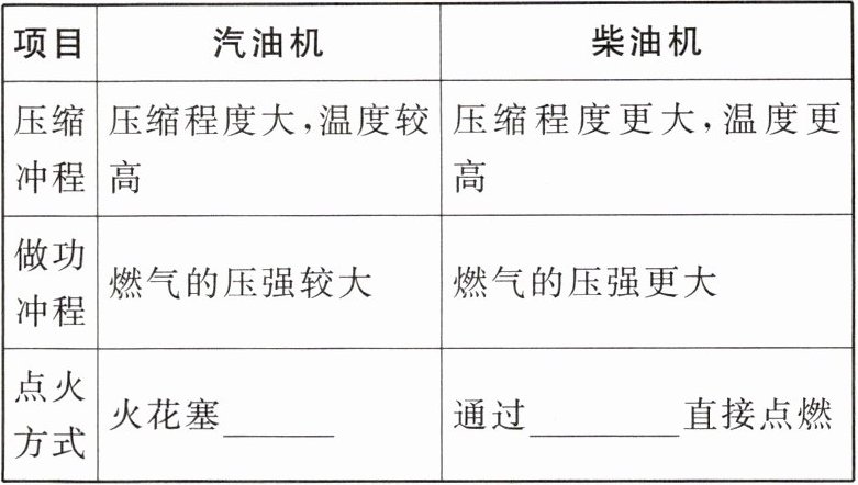 | 点火方式 | 火花塞____ | 通过____直接点燃 |
