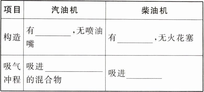 | 构造 | 有____,无喷油嘴 | 有____,无火花塞 |