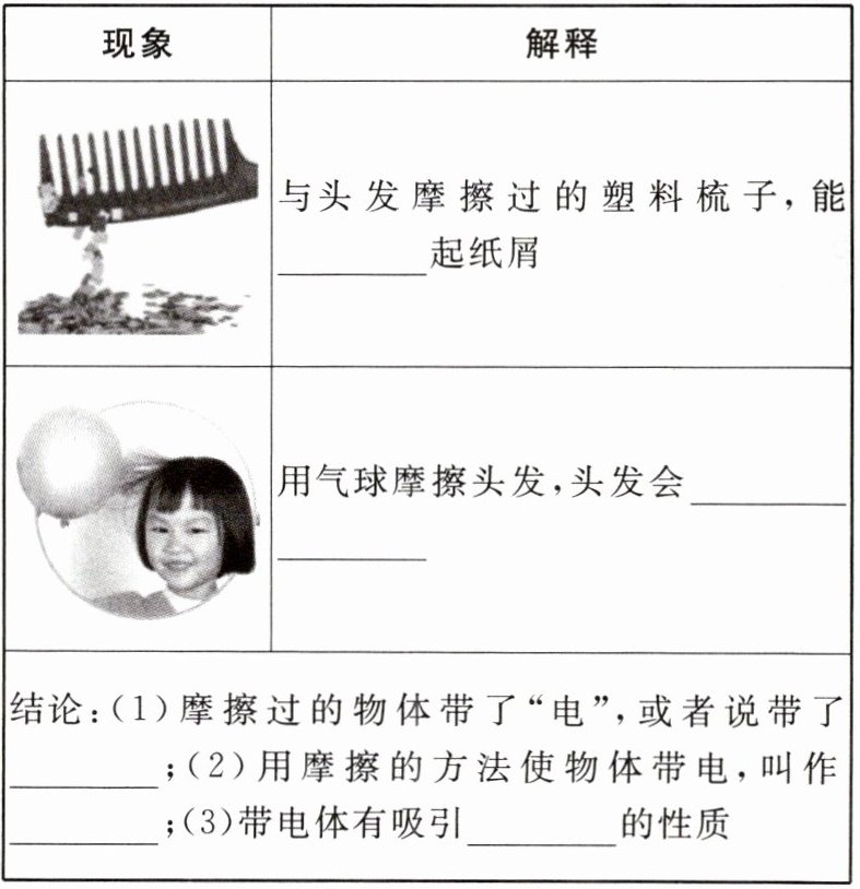 ||与头发摩擦过的塑料梳子,能______起纸屑|