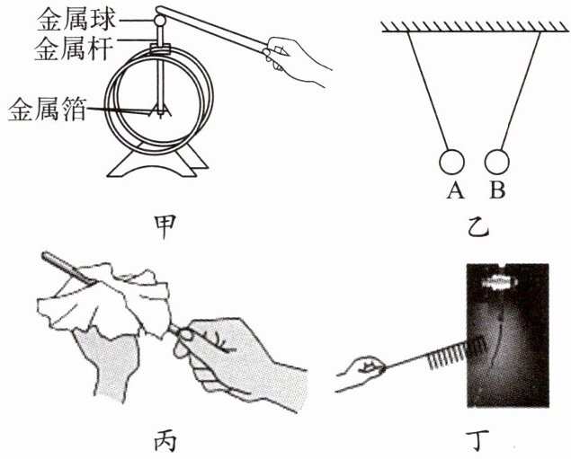 C.图丙:丝绸摩擦过的玻璃棒会带上正电荷,在这个过程中玻璃棒会得到电子
