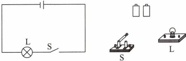解析 根据电路图,从电源的正极出发,依次连接开关、灯泡,然后连接到电源的负极。