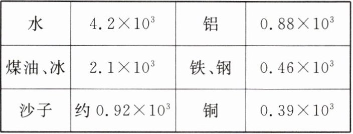 |水|$4.2×10^{3}$|铝|$0.88×10^{3}$|