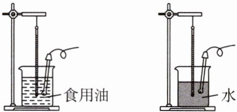 1. 如图所示,在探究不同物质吸收热量的情况的实验时,同学们使用的器材有相同规格的电加热器、玻璃杯、温度计、初温和质量都相同的水和食用油。关于实验,下列说法正确的是( )