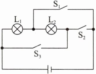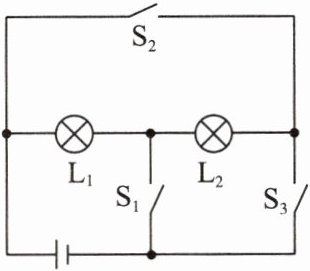 D.闭合开关 $ S_1 $、$ S_2 $、$ S_3 $ 时,灯泡 $ L_1 $、$ L_2 $ 均发光