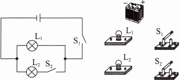 7. 如图所示的电路中,要让灯泡 $ L_1 $ 和 $ L_2 $ 并联,应闭合开关______;开关______不能同时闭合,否则会造成电源短路。