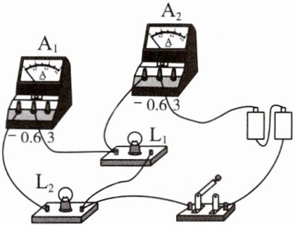 B.电流表$A_{1}测灯泡L_{2}$的电流