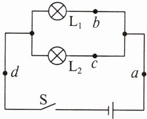 1. 如图所示,在探究并联电路中的电流关系时,小明同学用电流表测出a、b、c三处的电流分别为Iₐ = 0.5 A、Iᵦ = 0.3 A、Iₑ = 0.2 A,记录数据后,下一步首先应该做的是( )