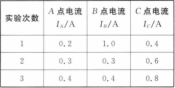 |实验次数|A点电流Iₐ/A|B点电流Iᵦ/A|C点电流Iₑ/A|