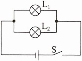 3. 如图所示,闭合开关 $S$ 后,小灯泡 $L_1$、$L_2$ 均发光,且小灯泡 $L_1$ 比小灯泡 $L_2$ 亮。下列说法正确的是(B)
