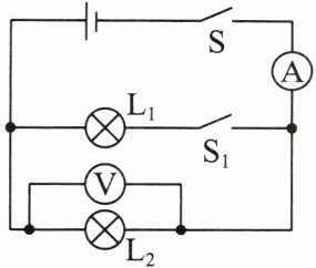 (1)由题图可知,开关S、S₁都闭合时,L₁与L₂并联,电流表测干路电流,电压表测量灯泡L₂两端的电压,已知电压表的示数为3 V,即L₂两端的电压为U₂=3 V。