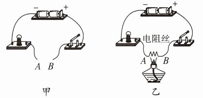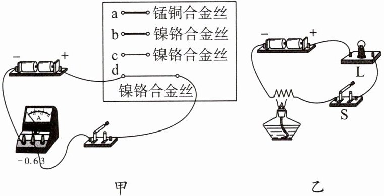 (4)该小组同学用电源、灯泡、导线、开关和钨丝组成如图乙所示的电路,闭合开关,灯泡发光;再用酒精灯对钨丝加热,会发现灯泡亮度变暗,因此可知导体电阻还可能跟______有关。