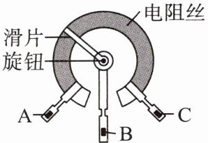 8. 调光台灯用到的电位器结构图如图所示,$A$、$B$、$C$为电位器的三个接线柱,转动滑片可调节灯泡亮度。下列分析不正确的是( )