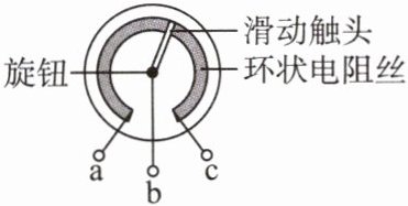 2. 机械式电位器的内部结构如图所示,其中a、c两个接线柱分别连接在环状电阻丝的两端,b接线柱跟铜制滑动触头相连,转动旋钮可带动滑动触头贴着电阻丝滑动。小艾想到如果把它与灯泡串联接入电路,通过转动旋钮可以改变灯泡的亮度,制成简易调光台灯。要使滑动触头顺时针转动时灯泡变暗,则接入台灯电路的接线柱应是( )