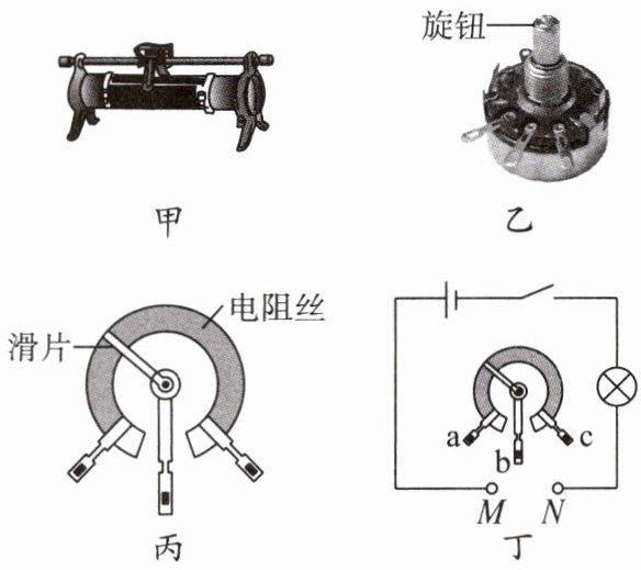 (1)能改变接入电路中电阻大小的元件叫作______,其中有一种是学生实验室中常用的滑动变阻器,如图甲所示;还有一种是如图乙所示的电位器,其内部结构如图丙所示,它们都是通过改变接入电路中电阻丝的______来改变接入电路中电阻大小的。