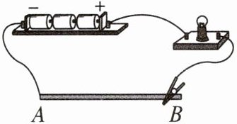4. 小明制作了一个简易调光灯,如图所示,取一导体,导线先接在导体的A端固定不动,再用金属夹夹在B端,接着使金属夹向A端慢慢移动,可观察到灯泡的亮度______(选填“变亮”“变暗”或“不变”),此过程中电路中的电流变______,灯泡两端的电压变______。
