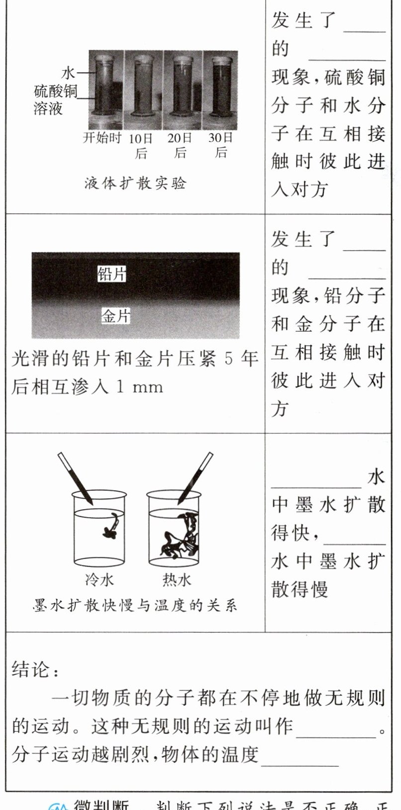- 金片 | 发生了____的现象,铅分子和金分子在互相接触时彼此进入对方 |