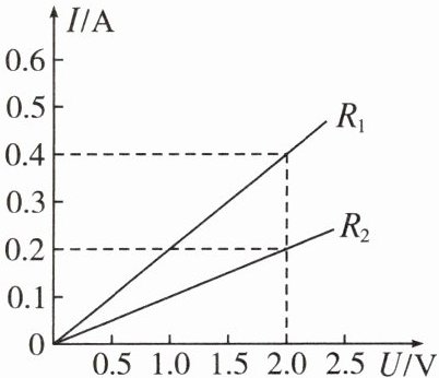 5. 在探究电流与电压的关系的实验中,分别用电阻 $ R_1 $、$ R_2 $ 进行实验,并根据各自的实验数据绘制出如图所示的 $ I - U $ 关系图像,由图可知( )