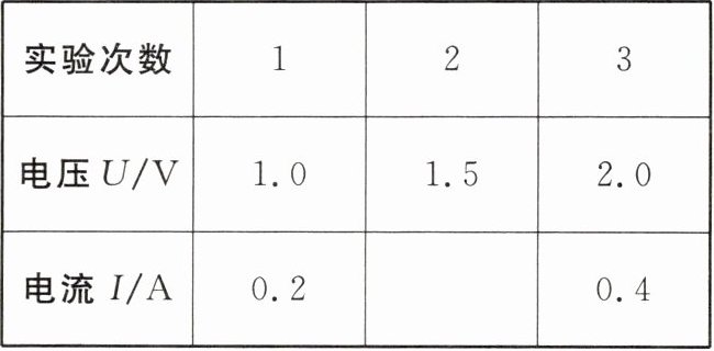 |电压 $ U/V $| 1.0 | 1.5 | 2.0 |