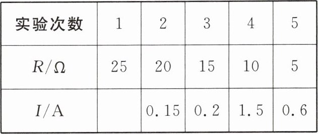 9. 用三节干电池作电源探究通过导体的电流与电阻的关系,选用的五个定值电阻的阻值分别为 $ 5\Omega $、$ 10\Omega $、$ 15\Omega $、$ 20\Omega $、$ 25\Omega $。
