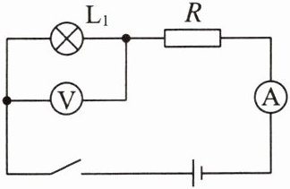 (1)由题图可知,灯泡L₁与定值电阻R串联接入电路,电流表测量电路中的电流,电压表测量灯泡L₁两端的电压。