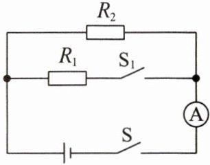 (2)开关 S 和$S_{1}$均闭合时,$R_{1}$和$R_{2}$并联,通过$R_{1}$的电流: