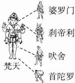 造物神用自己的嘴创造出婆罗门,用手创造出刹帝利,用腿创造出吠舍,用脚创造出首陀罗。因为高低贵贱的区别,下一等级的人没资格从事上一等级的职业,不同等级的人不能通婚。