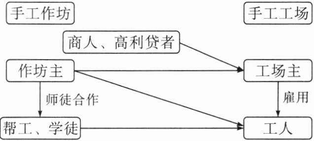 探究点二 提示 手工作坊:封建社会城市中手工业生产的基本单位。手工作坊主拥有私有的生产资料,分散经营,以本人的手工劳动为主要的生活来源,一般不雇佣工人,只有做辅助性工作的帮工和学徒。帮工、学徒没有工资,仅有维持生计的微薄报酬,因此,作坊主与帮工、学徒之间不存在资本主义性质的雇佣关系。
