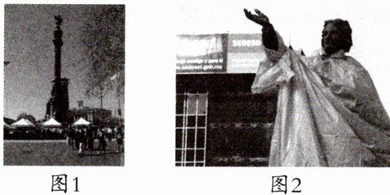 材料 图1:位于西班牙的哥伦布纪念碑上有“光荣属于哥伦布”“向哥伦布致敬”两行大字。图2:2007年10月,拉美各地的印第安人举行游行示威,要求将“哥伦布日”改为“土著人民抵抗日”,他们给哥伦布塑像披上塑料外套,要求世界重新评价哥伦布。